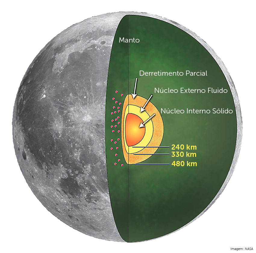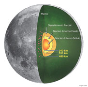A estrutura da Lua é formada por um núcleo, o manto e a crosta.